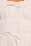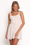 DETAILS Featuring a flattering mini length and a delicate V-neckline. this dress combines elegance with a touch of casual charm. The elasticised shoulder straps and shirred waistband ensure a perfect. comfortable fit that accentuates your silhouette. while the non-functional tie detail adds a playful hint of texture.