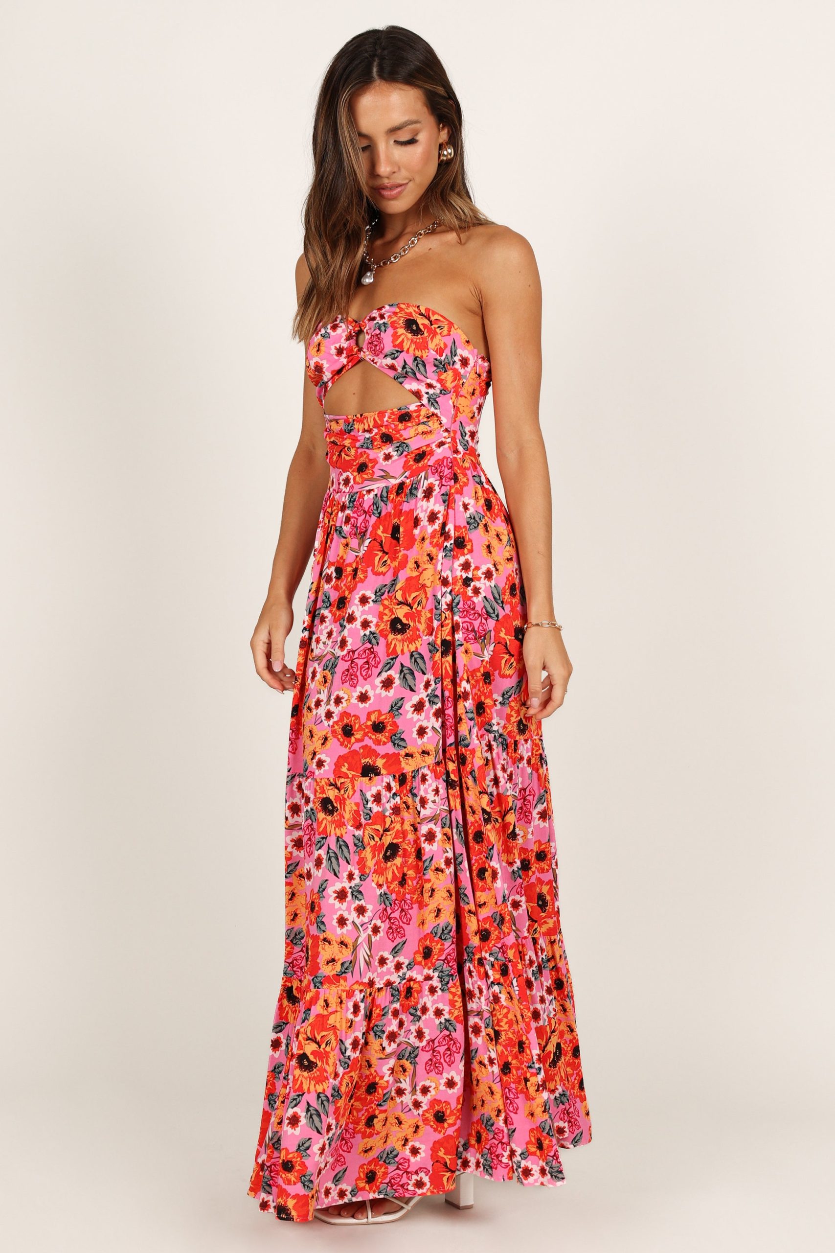 Sway into summer in style with this beautiful maxi length dress! Show off your curves with a sweetheart neckline. ring detail on the bust and a cut out feature under the bust. With an invisible side zip and hook and eye clasp for easy wear. you’ll be ready to take on any party!