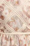 Designed with a flattering halter neck and adjustable straps. this piece ensures the perfect fit for any occasion. The delicate paisley print is complemented by intricate crochet knit detailing. adding a touch of artistry to your wardrobe.